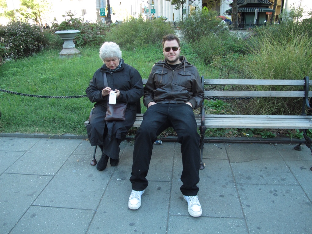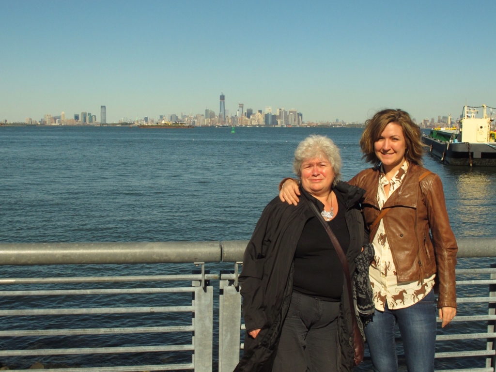 Though the ferry is popular with visitors to NYC, Staten Island itself doesn't contain much that interests me. The main attraction is Historic Richmond Town, a 'living history' village and museum, which may well be impressive but I worry could pale in comparison with older, grander European equivalents. Apart from that there is a Tibetan museum and some botanical gardens, which are unlikely to be that impressive in October. We still decided to go for a little stroll along the waterfront and were rewarded with this very squinty picture of me and my Ma staring into the sun with NYC behind us.