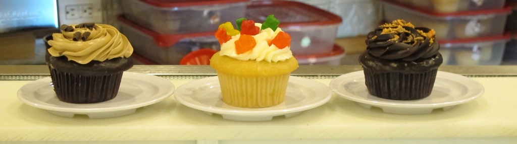 Once the wee little sprite had exhausted herself, we got on with ordering our cakes. There are a huge array of exciting flavours, but you can also build your own and I went for a bog standard vanilla and buttercream, with some gummi bears, just for a lark. As I ordered, I commented on the lunacy of ordering a chocolate base with a cream cheese topping and the girl serving me said that is exactly what Steven Tyler ordered when he'd been in a few weeks ago. Apparently he put it all in his mouth at once and ate it in one bite. For more exciting stories like that, come back next time kids! x