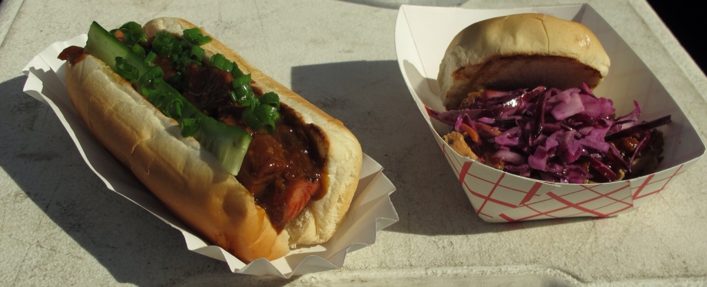 The next day we headed to the Fort Greene Flea Market, as one of my pals had read my previous post about it and made a special request. The sun put his hat on just for her too, with another beautifully warm and bright day. A couple of us headed to Asia Dogs stand for a wee pork slider with slaw for me, and a beef dog with pork for her….