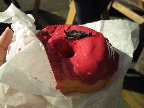 I only went for a little slider as I was determined to find the luscious donut stand I'd partaken from on my last visit (and which had sold out when I wanted one at the Williamsburg flea). When I finally found it they only had four hibiscus donuts left, so I pounced and my GOD, they make some delicious freshness. I'm not even mad keen on donuts, cupcakes are more my bag, but these are truly the kings of the donut world.