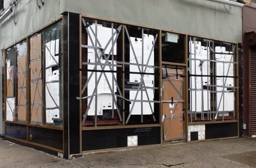 I write this to you from our brand new apartment in Bedford Stuyvesant, about 30 minutes walk from where we were before. We moved a couple of days ago, as the guy we were subletting from was due back. However, silly old Sandy the hurricane got his flight cancelled, so poor Harrison the cat has been left to weather the storm alone. Seeing as I have no desire to have a starved cat on my conscience… And because I think he's one of the best felines I've ever met, I braved the hurricane conditions this morning to check in on him. It's possible I'm being a little dramatic here, the eye of the storm isn't due to hit until this evening and the weather on my walk there was just a bit grim, not in the slightest bit dangerous (though it was a little rougher on the way back). Everything still felt a bit 'off' though, Brooklyn is on lock down, with most shops shuttered and dark. Some more haphazardly than others.