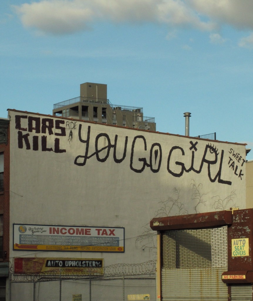 Strange little metal couple on a wall on Franklin Avenue in Bed Stuy.