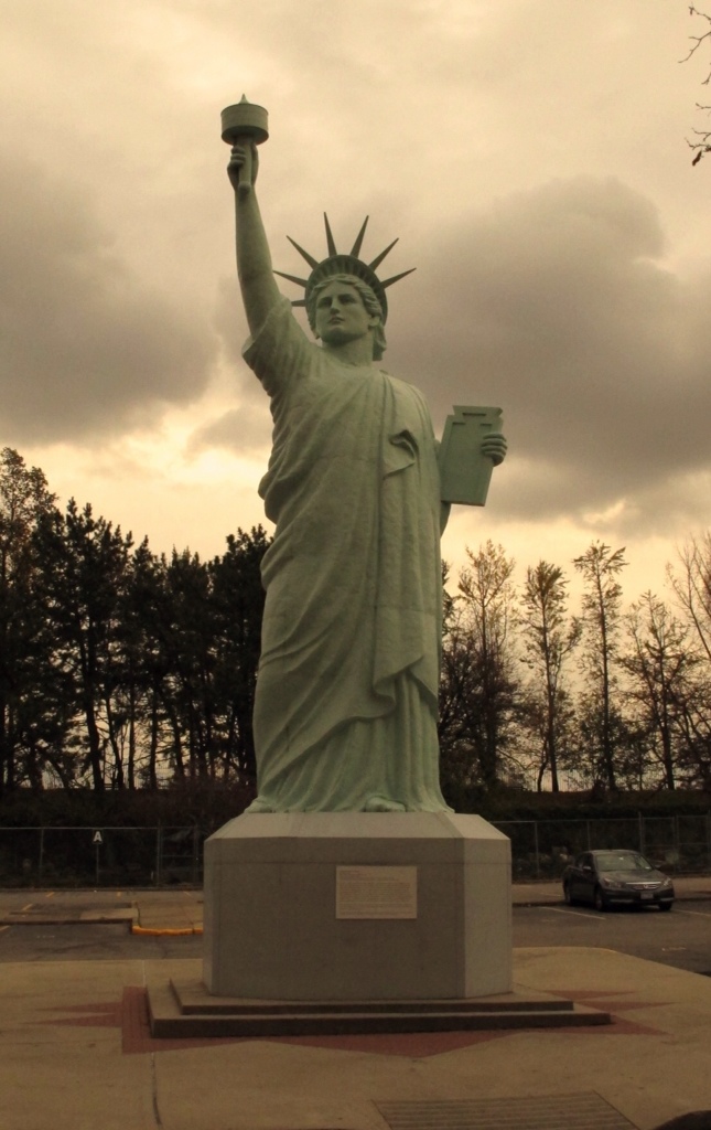 Proportionately challenged Statue of Liberty replica in the carpark at the Brooklyn Museum.